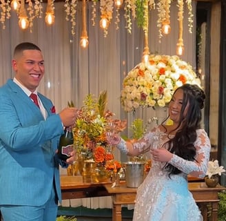 Filmado e editado durante o casamento e disponivel para todos assistirem durante a festa
